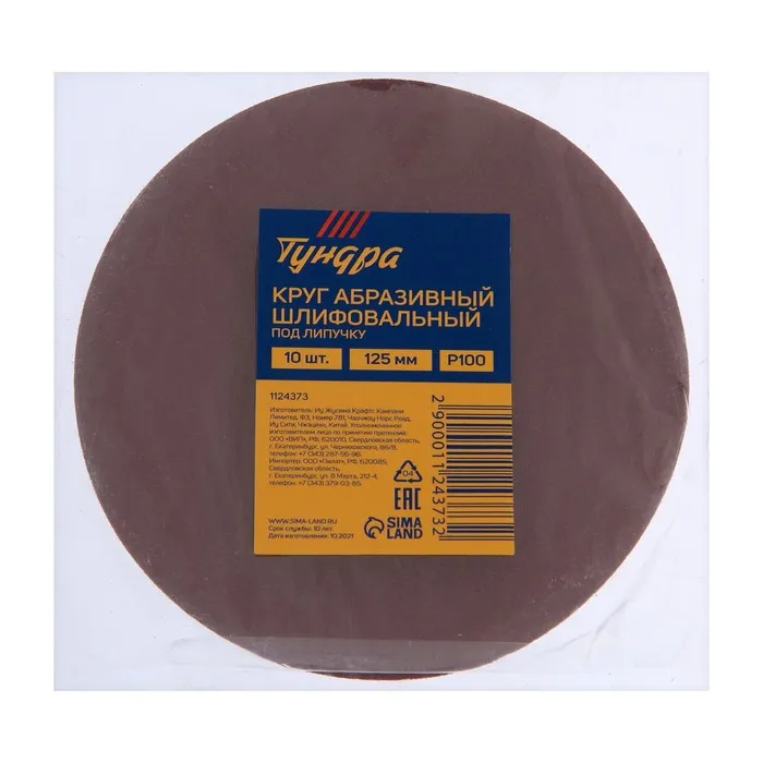 Круг абразивный шлифовальный под «липучку» ТУНДРА, 125 мм, Р100, 10 шт. — Характеристики