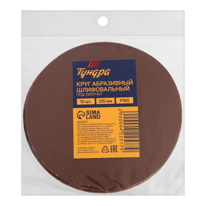 Круг абразивный шлифовальный под «липучку» ТУНДРА, 125 мм, Р150, 10 шт. — Характеристики