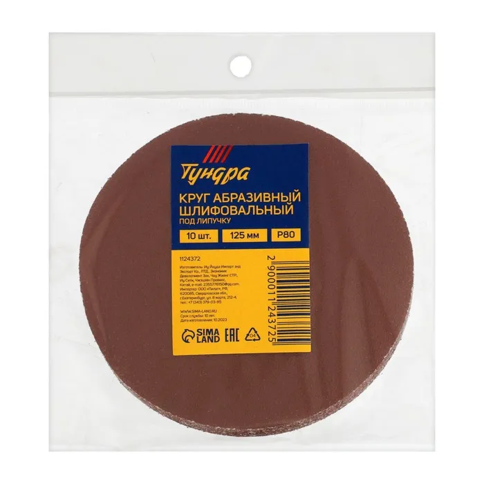 Круг абразивный шлифовальный под «липучку» ТУНДРА, 125 мм, Р80, 10 шт. — Характеристики