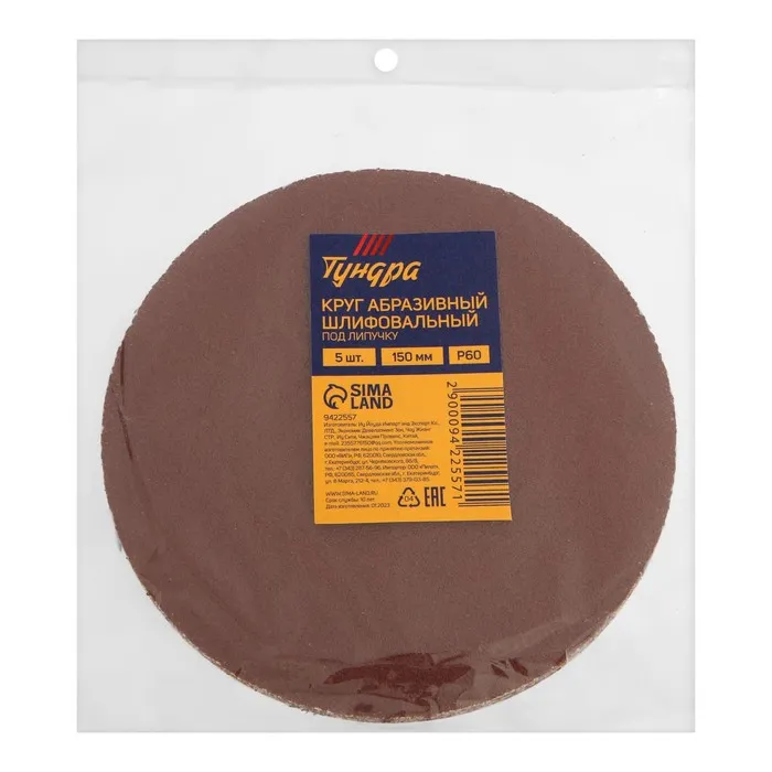 Круг абразивный шлифовальный под «липучку» ТУНДРА, 150 мм, Р60, 5 шт. — Характеристики