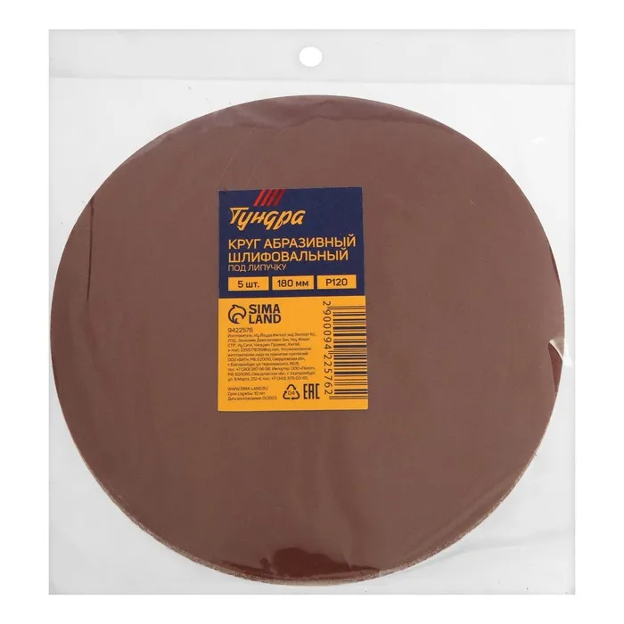 Круг абразивный шлифовальный под «липучку» ТУНДРА, 180 мм, Р120, 5 шт. — Характеристики