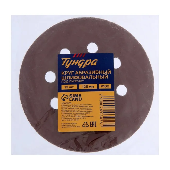 Круг абразивный шлифовальный под «липучку» ТУНДРА, перфорированный, 125 мм, Р100, 10 шт. — Характеристики