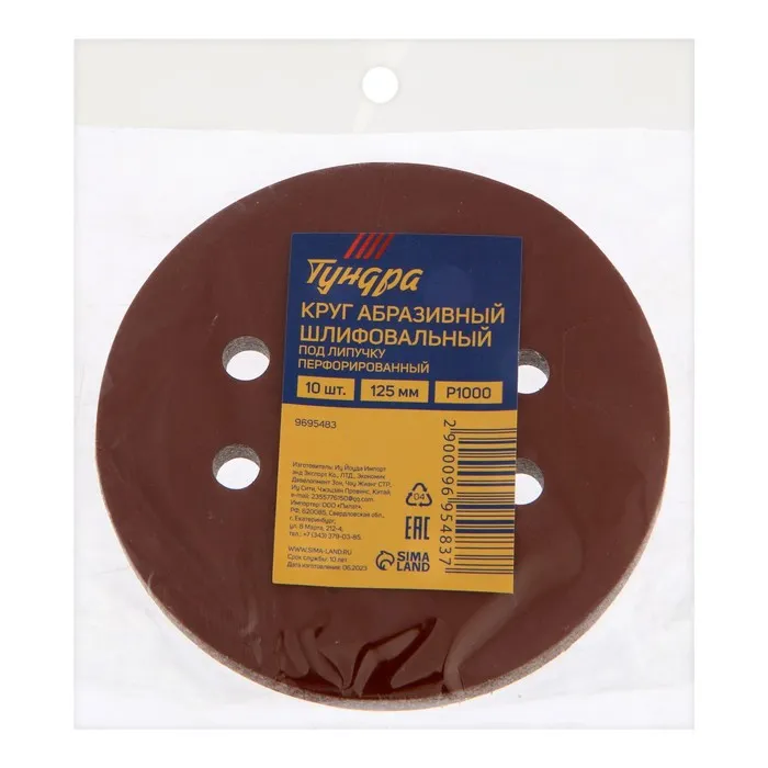 Круг абразивный шлифовальный под «липучку» ТУНДРА, перфорированный, 125 мм, Р1000, 10 шт. — Характеристики