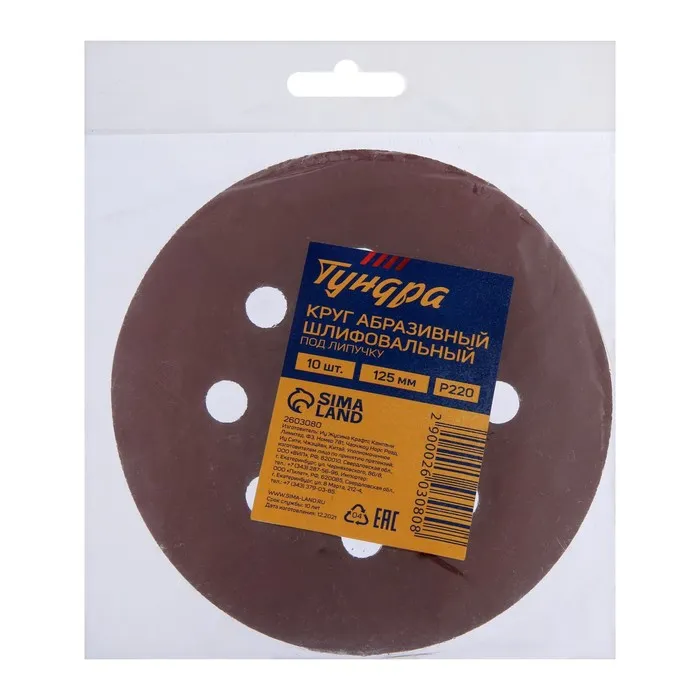 Круг абразивный шлифовальный под «липучку» ТУНДРА, перфорированный, 125 мм, Р220, 10 шт. — Характеристики