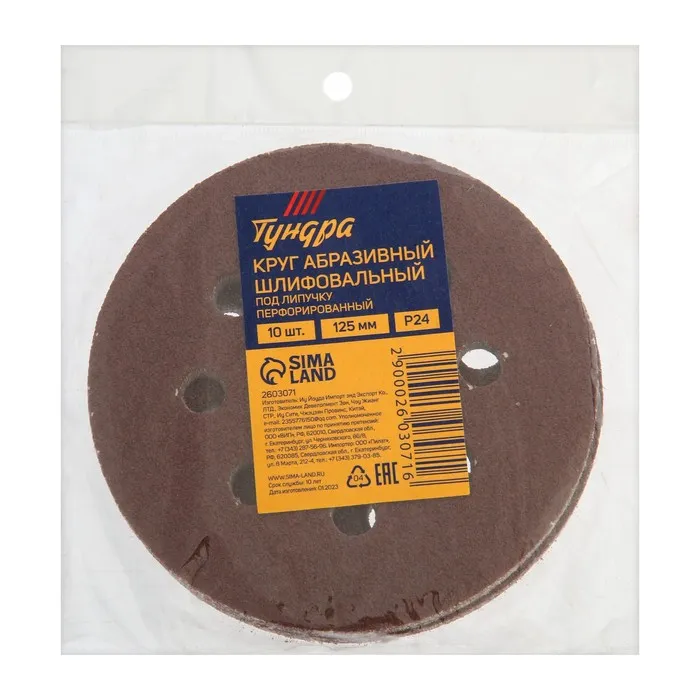 Круг абразивный шлифовальный под «липучку» ТУНДРА, перфорированный, 125 мм, Р24, 10 шт. — Характеристики