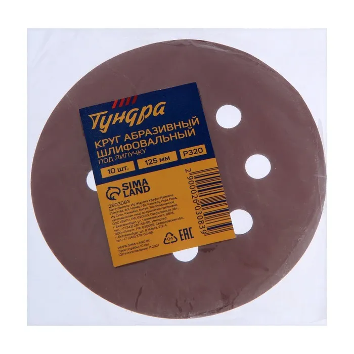 Круг абразивный шлифовальный под «липучку» ТУНДРА, перфорированный, 125 мм, Р320, 10 шт. — Характеристики