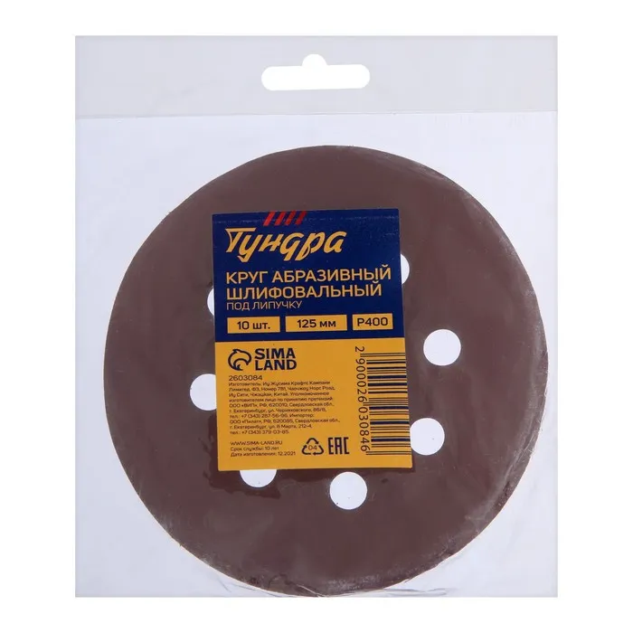 Круг абразивный шлифовальный под «липучку» ТУНДРА, перфорированный, 125 мм, Р400, 10 шт. — Характеристики