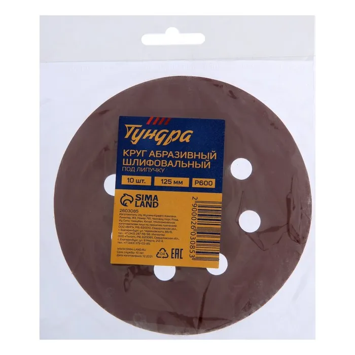Круг абразивный шлифовальный под «липучку» ТУНДРА, перфорированный, 125 мм, Р600, 10 шт. — Характеристики