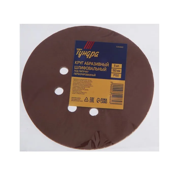 Круг абразивный шлифовальный под «липучку» ТУНДРА, перфорированный, 150 мм, Р150, 5 шт. — Характеристики