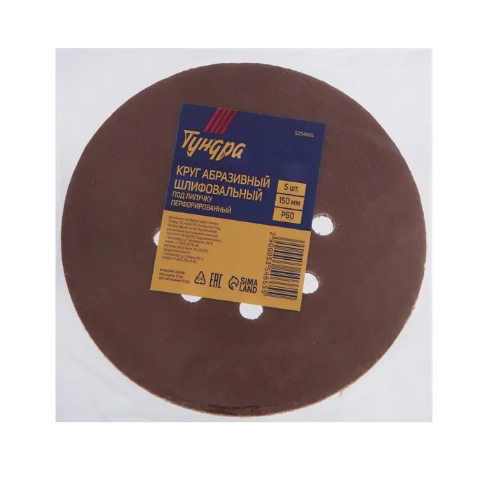 Круг абразивный шлифовальный под «липучку» ТУНДРА, перфорированный, 150 мм, Р60, 5 шт. — Характеристики