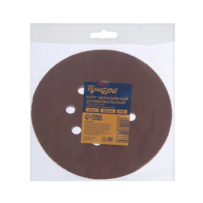 Круг абразивный шлифовальный под «липучку» ТУНДРА, перфорированный, 150 мм, Р80, 5 шт. — Характеристики