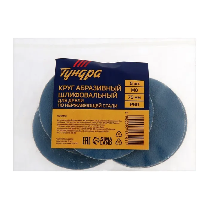 Круг абразивный шлифовальный ТУНДРА, по нержавеющей стали, для дрели, М8, 75 мм, P60, 5 шт. — Характеристики