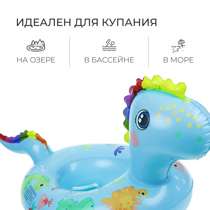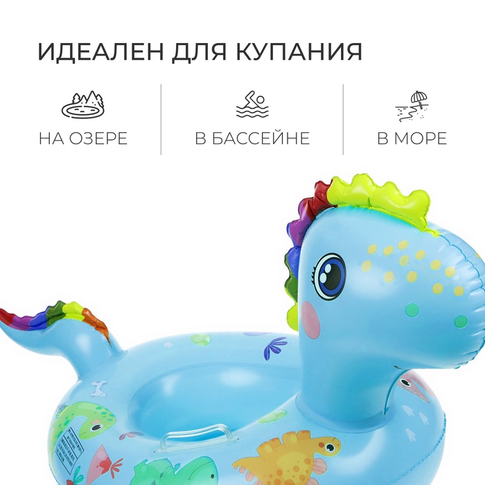 Круг для плавания «Динозаврик», 75×50 см, детский, с сиденьем. бирюзовый — Характеристики
