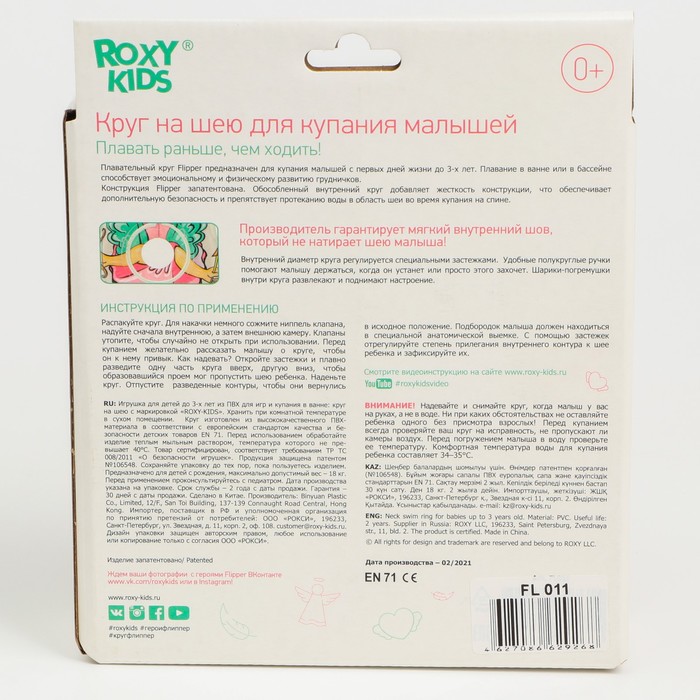 Круг для плавания на шею Flipper «Ангел», надувной, с ручками, цвет розовый — Характеристики