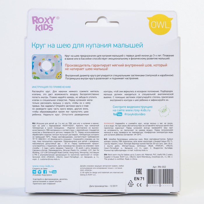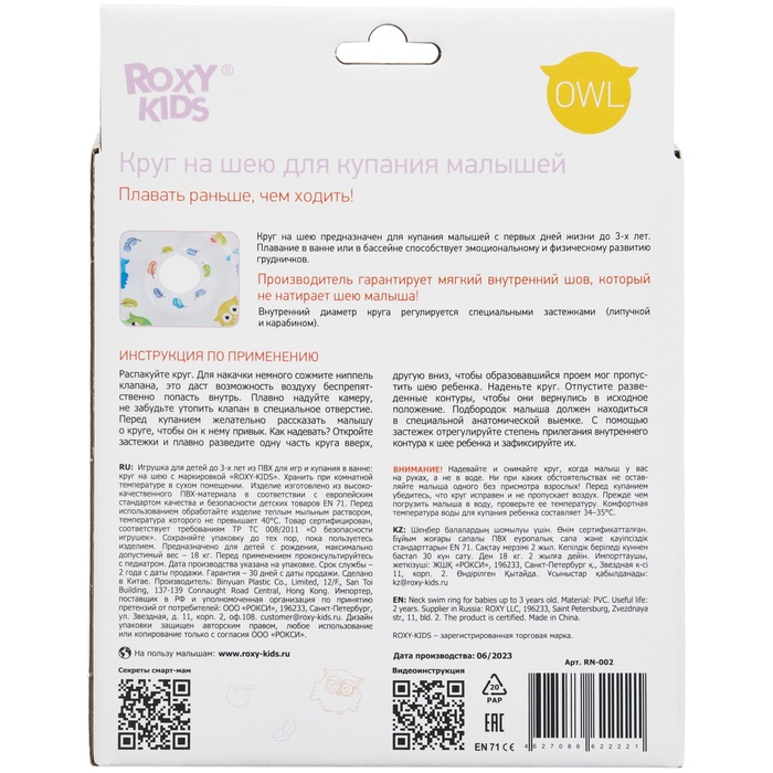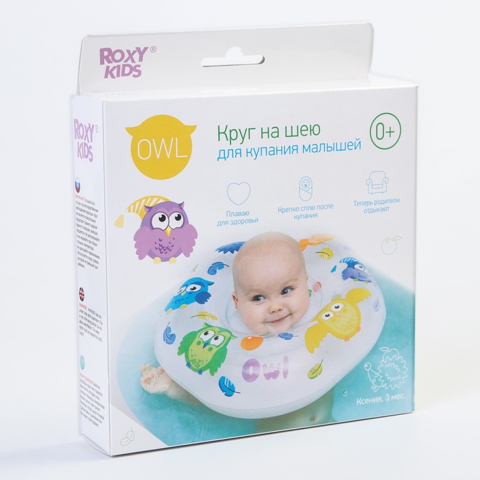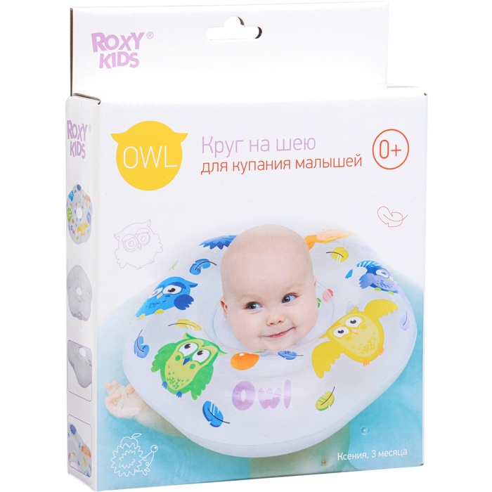 Круг для плавания на шею Owl, «Птички», надувной, с ручками, белый — Характеристики