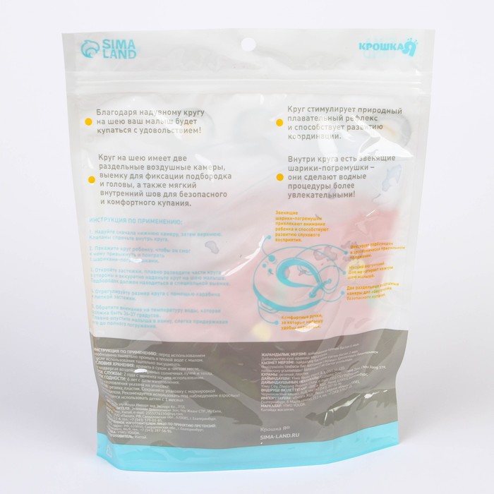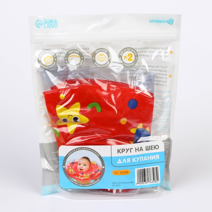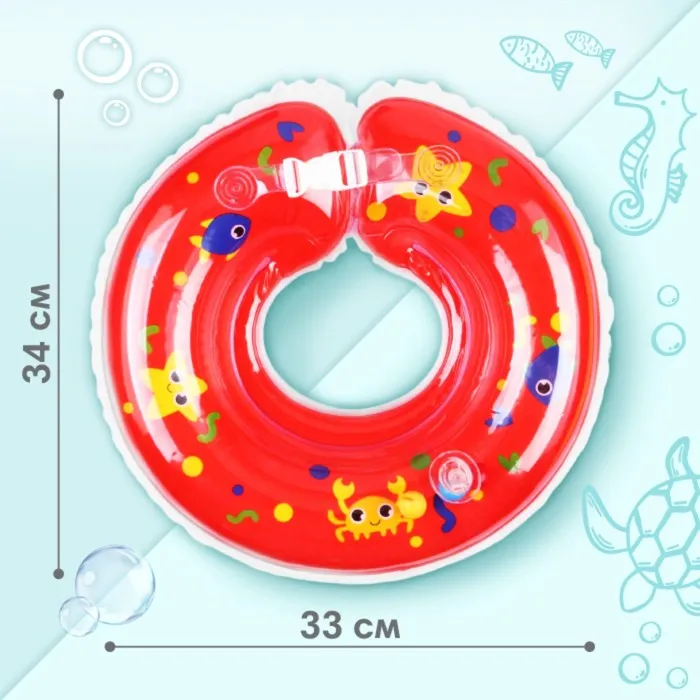 Круг для плавания новорожденных на шею Крошка Я «Давай купаться», надувной, с ручками, красный — Характеристики