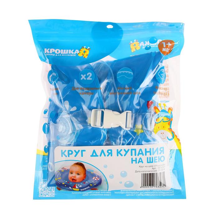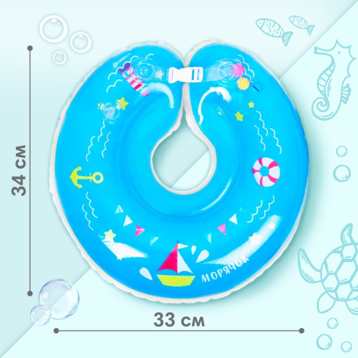 Круг для плавания новорожденных на шею Крошка Я «Морячок», надувной, с ручками, голубой — Характеристики
