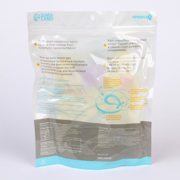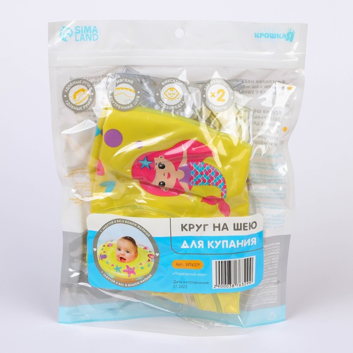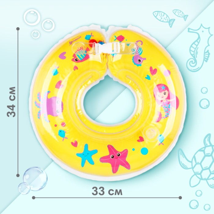 Круг для плавания новорожденных на шею Крошка Я «Русалочки», надувной, с ручками, желтый — Характеристики