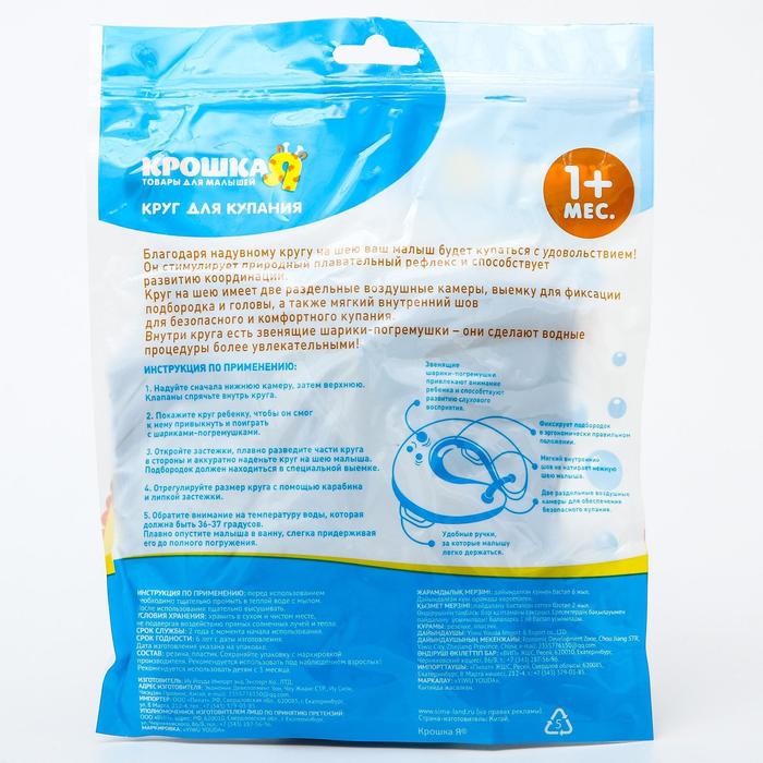 -Комфортное использование: надувной эластичный обод предупреждает давление на шею ребёнка, мягкая вставка для подбородка поддерживает головку над водой, а в местах соприкосновения с кожей круг обработан по технологии «внутреннего шва» (гладкий материал не натирает нежную кожу ребёнка).