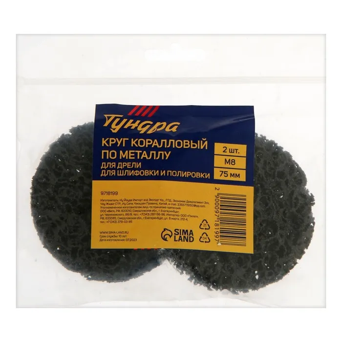 Круг коралловый по металлу ТУНДРА, для шлифовки и полировки, для дрели, М8, 75 мм, 2 шт. — Характеристики