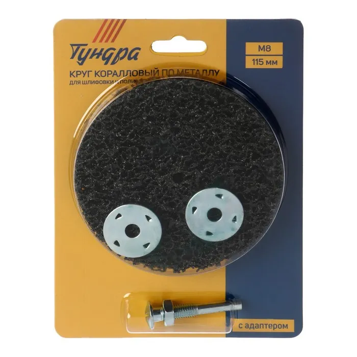 Круг коралловый по металлу ТУНДРА, для шлифовки и полировки, М8, 115 мм, с адаптером — Характеристики
