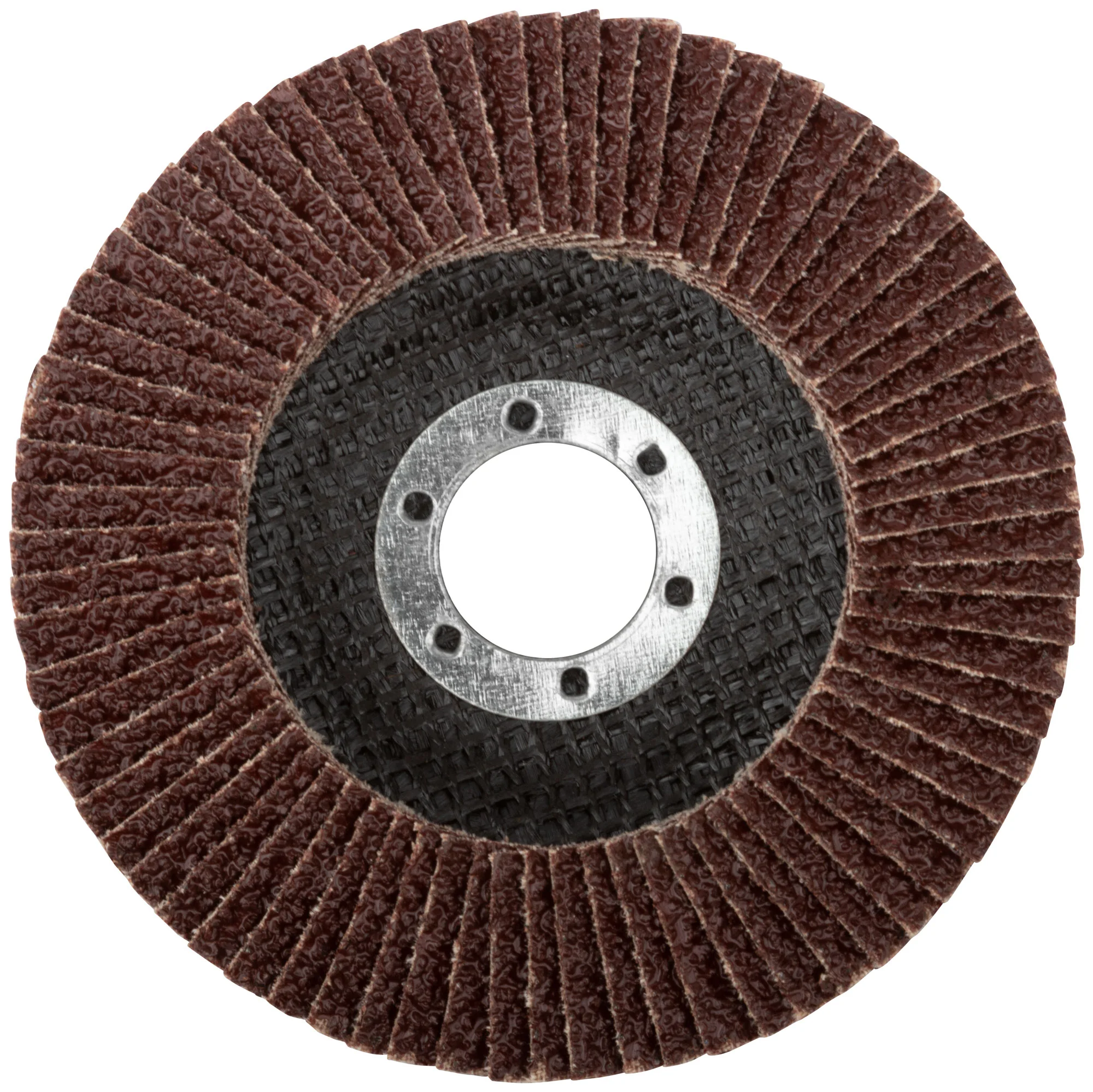 Круг изготовлен с использованием 72 лепестков, что повышает его износостойкость и долговечность. Посадочный диаметр 22,2 мм позволяет использовать его с большинством стандартных углошлифовальных машин. Его коническая форма типа 2 обеспечивает удобство работы в труднодоступных местах.