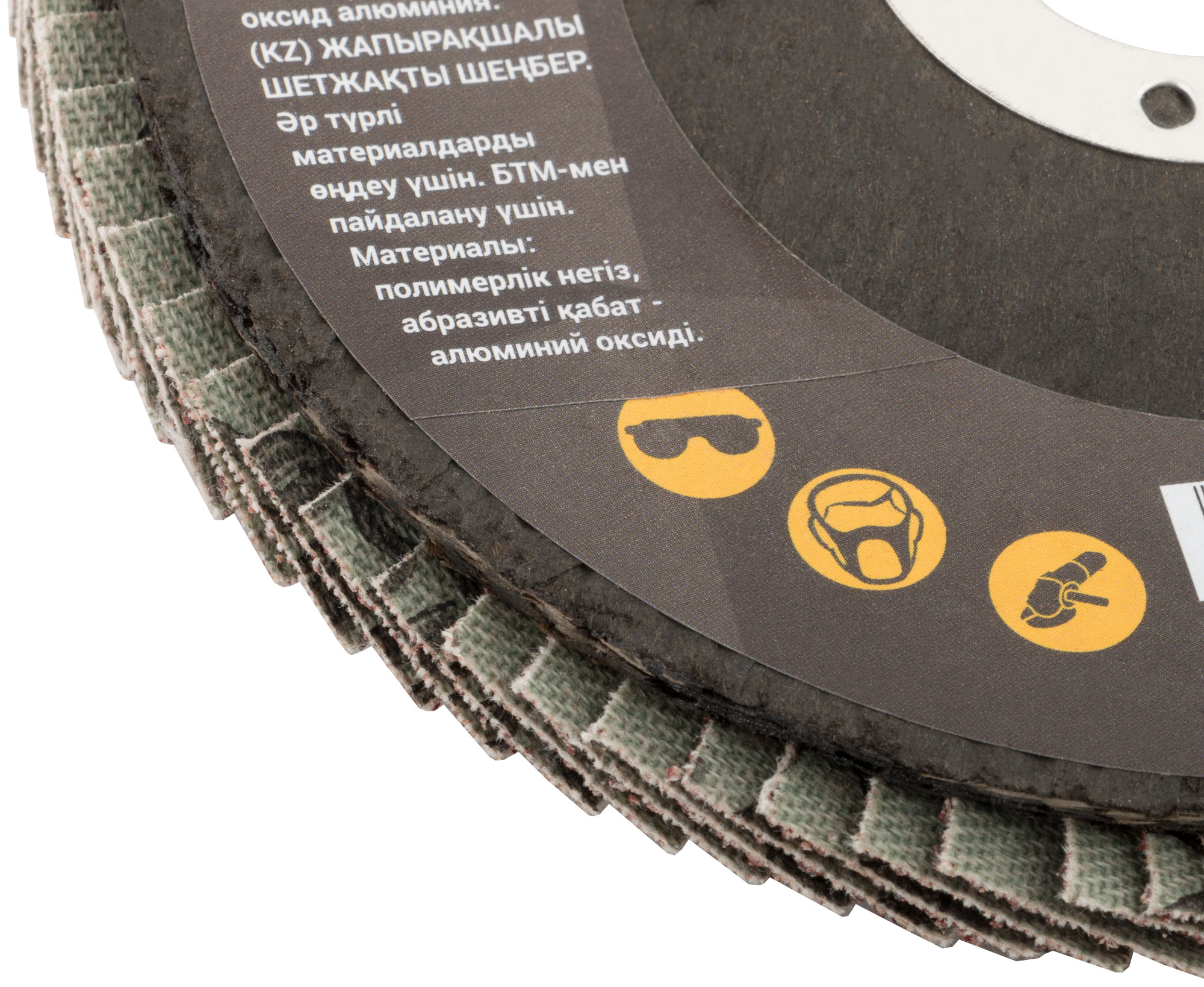 Круг оснащён 80 лепестками, расположенными под углом, что увеличивает площадь контакта с обрабатываемой поверхностью и улучшает качество обработки. Полимерная основа и абразивный слой из оксида алюминия делают его прочным и долговечным.