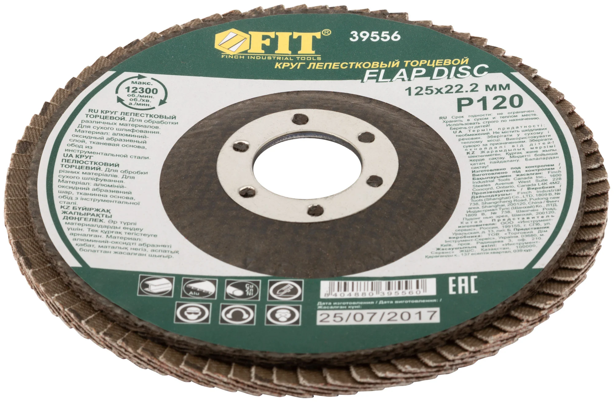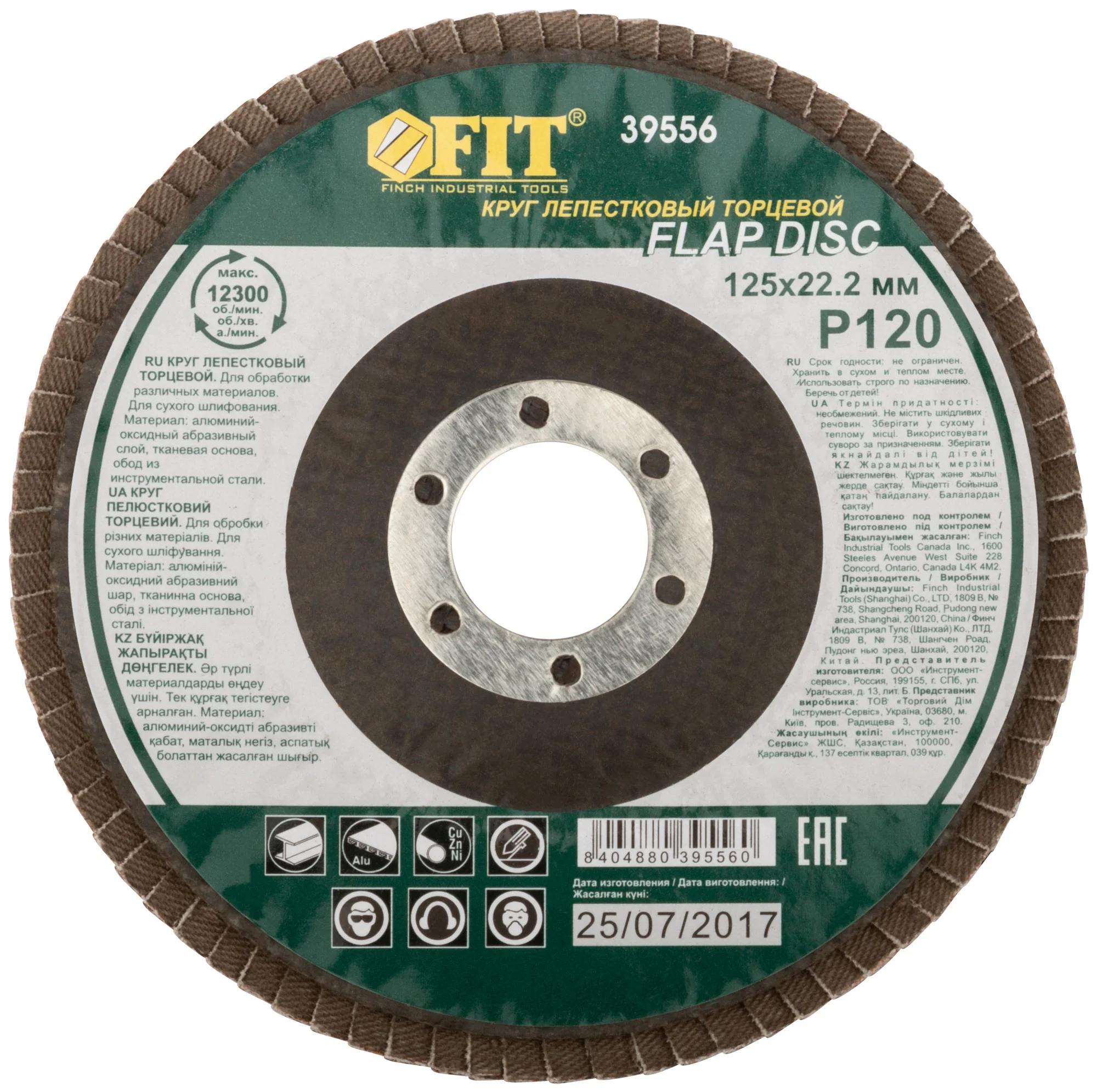 Круг лепестковый торцевой от FIT диаметром 125 мм и зернистостью Р120 предназначен для шлифовки и обработки металлических и деревянных поверхностей. Используется с углошлифовальными машинами, обеспечивает высокую производительность и качество обработки благодаря своей конструкции и материалам.