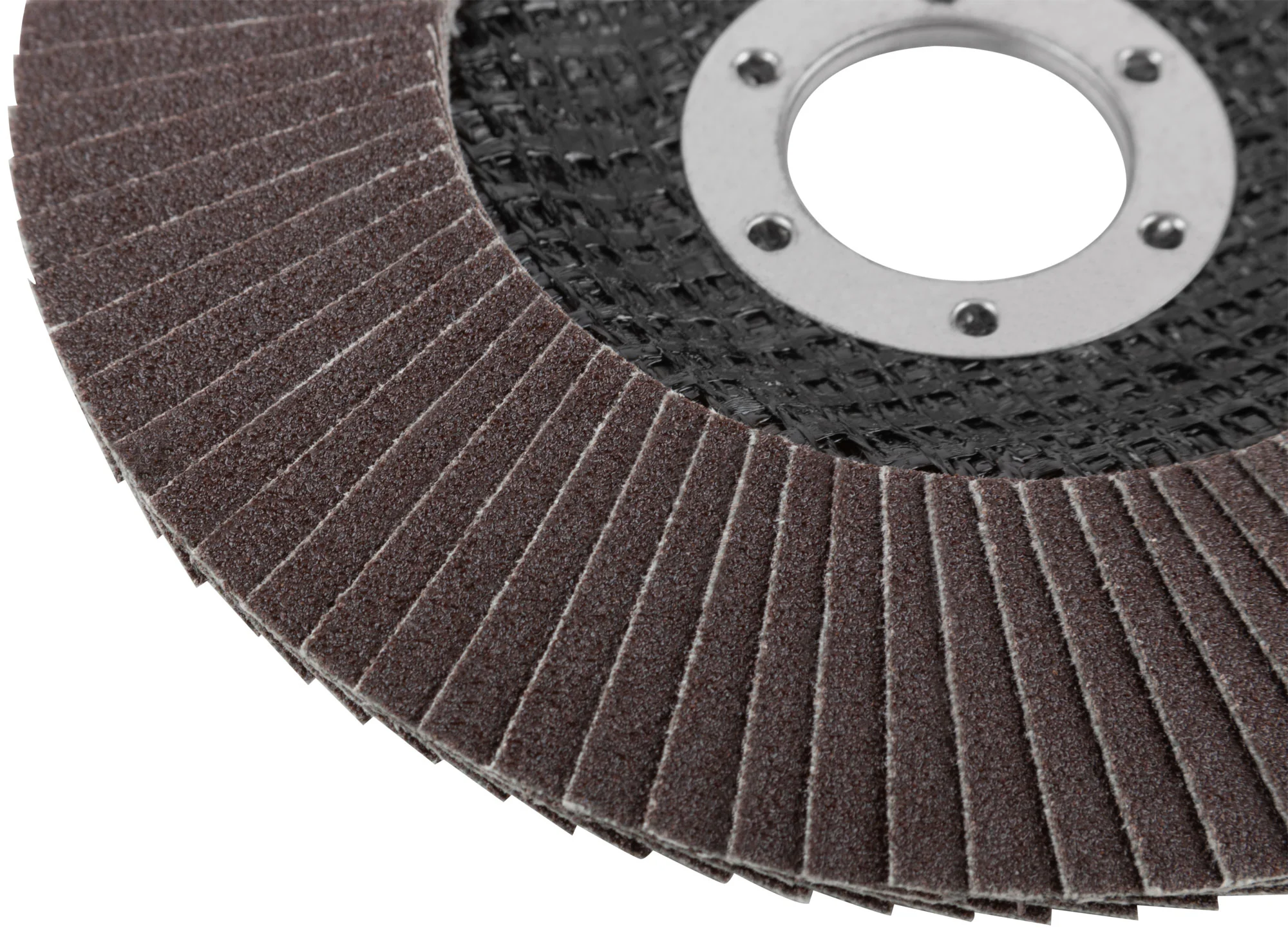 Круг выполнен с использованием кальцинированного оксида алюминия, что значительно увеличивает скорость обработки поверхностей. Изготовлен из высококачественных материалов: абразивный слой на основе х/б ткани, подложка из стекловолокна и обод из инструментальной стали.