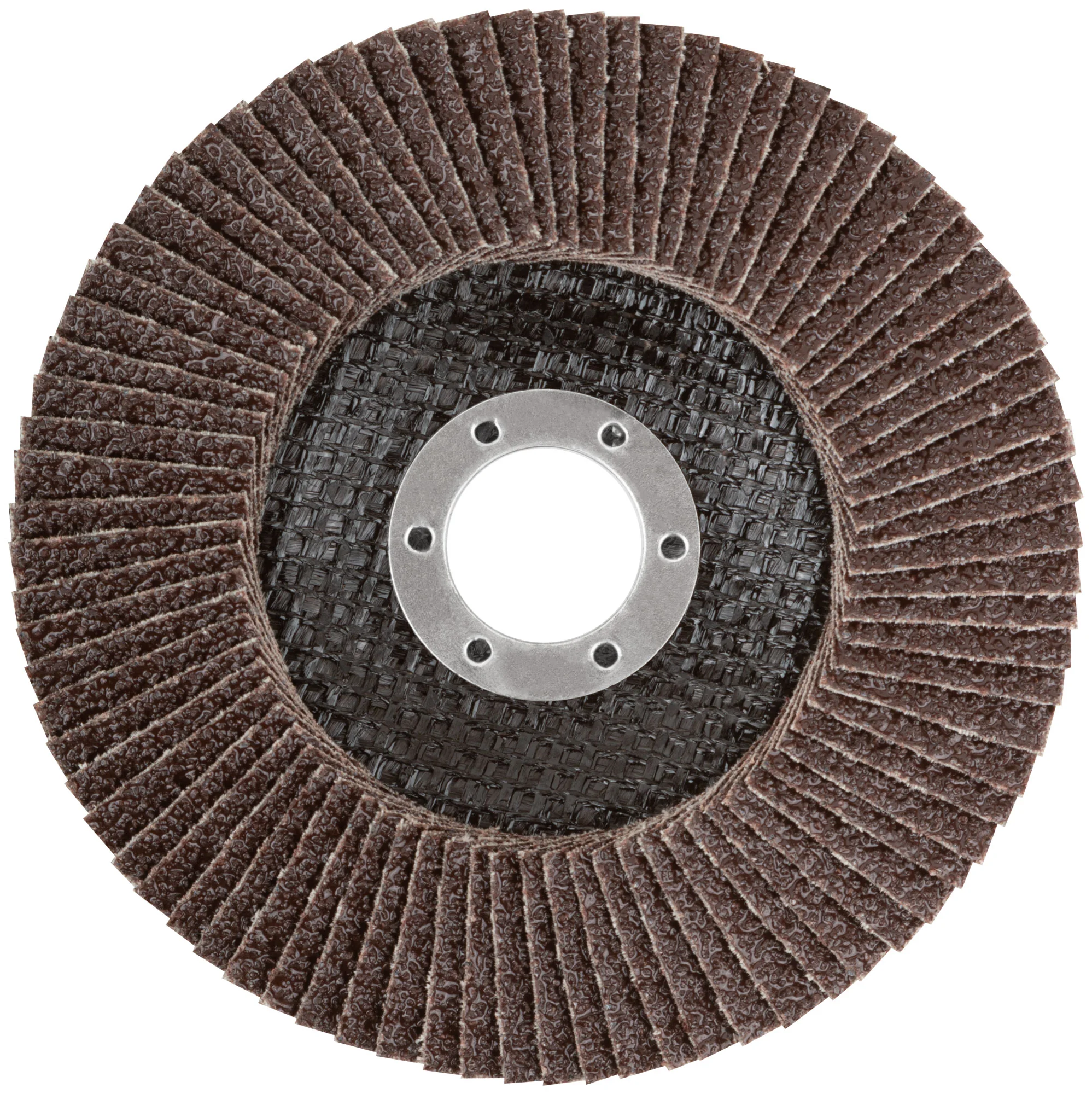 Изделие оснащено абразивным слоем из кальцинированного оксида алюминия, что значительно увеличивает скорость обработки поверхности. Коническая конструкция (Тип 2) с 80 лепестками позволяет эффективно обрабатывать большие площади без лишних усилий.