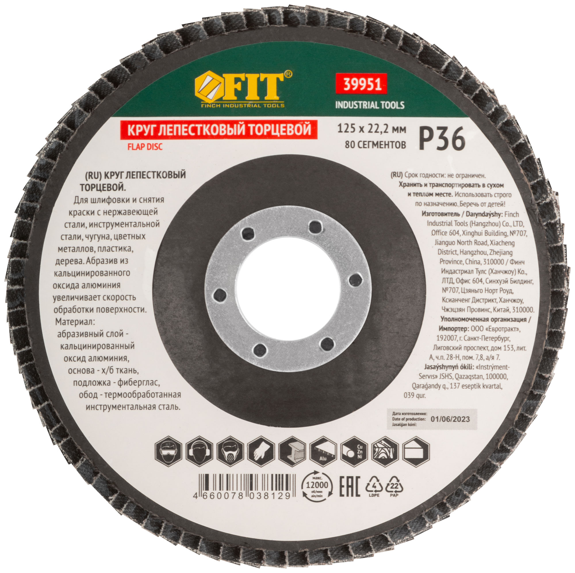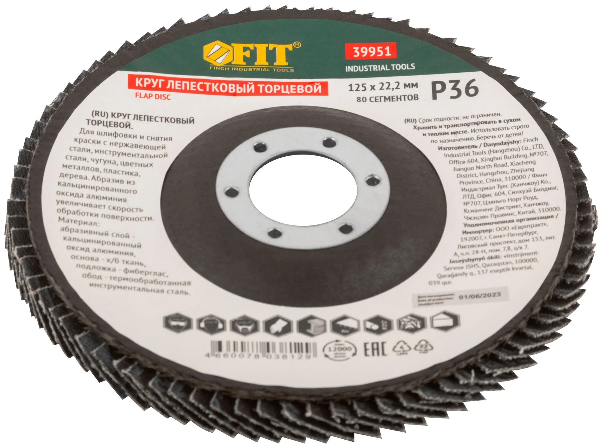 Круг лепестковый торцевой FIT диаметром 125 мм и зернистостью Р36 — это идеальный инструмент для сухого шлифования и снятия краски с нержавеющей стали, инструментальной стали, чугуна, цветных металлов, пластика и дерева. Используйте его с угловыми шлифмашинами для быстрого и качественного результата.