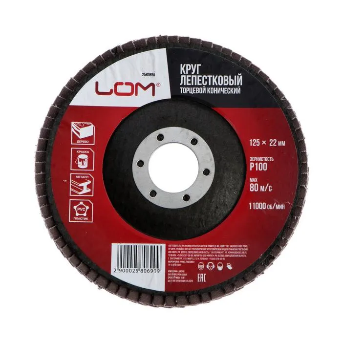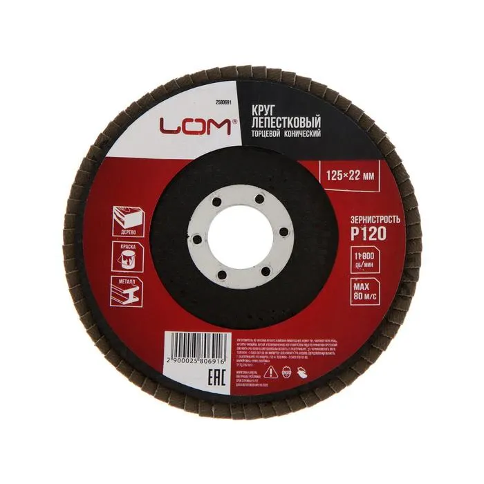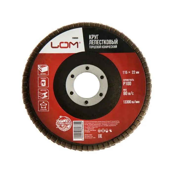 Круг лепестковый торцевой ЛОМ, 115×22 мм, Р120 — Характеристики