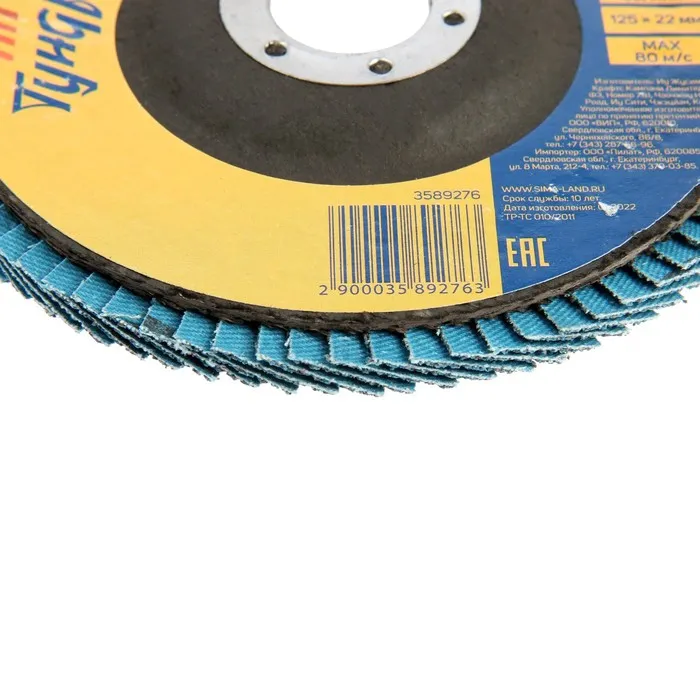 Круг лепестковый торцевой ТУНДРА, циркониевый (по нержавеющей стали), 125×22 мм, Р40 — Характеристики