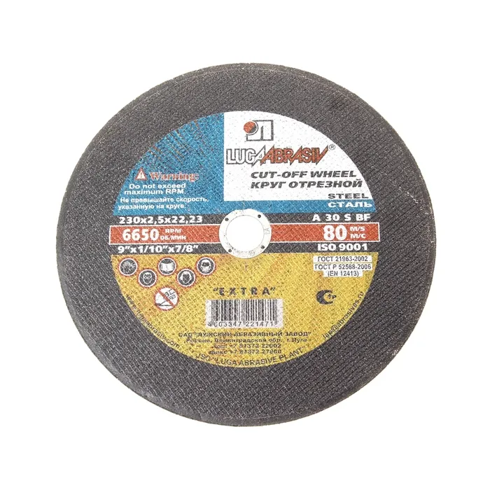 Круг отрезной по металлу «Луга» A 30 S BF 80 (14 А БУ), 230×2.5×22 мм — Характеристики
