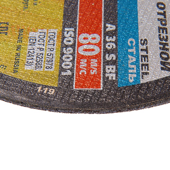 Круг отрезной по металлу «Луга», A 36 S BF 80, 14 А БУ, 180×2×22 мм — Характеристики