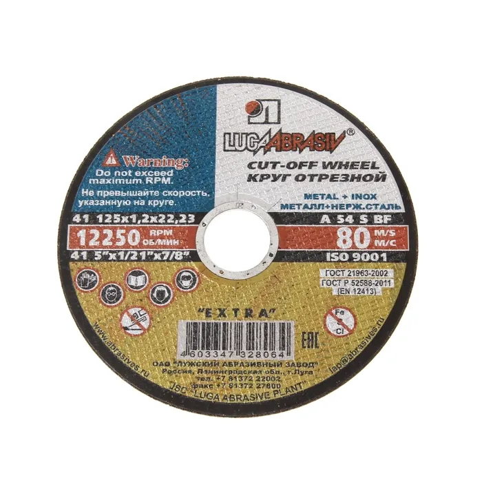 Круг отрезной по металлу «Луга» A 54 S BF 80 (14 А БУ), 125×1.2×22 мм — Характеристики