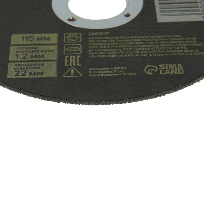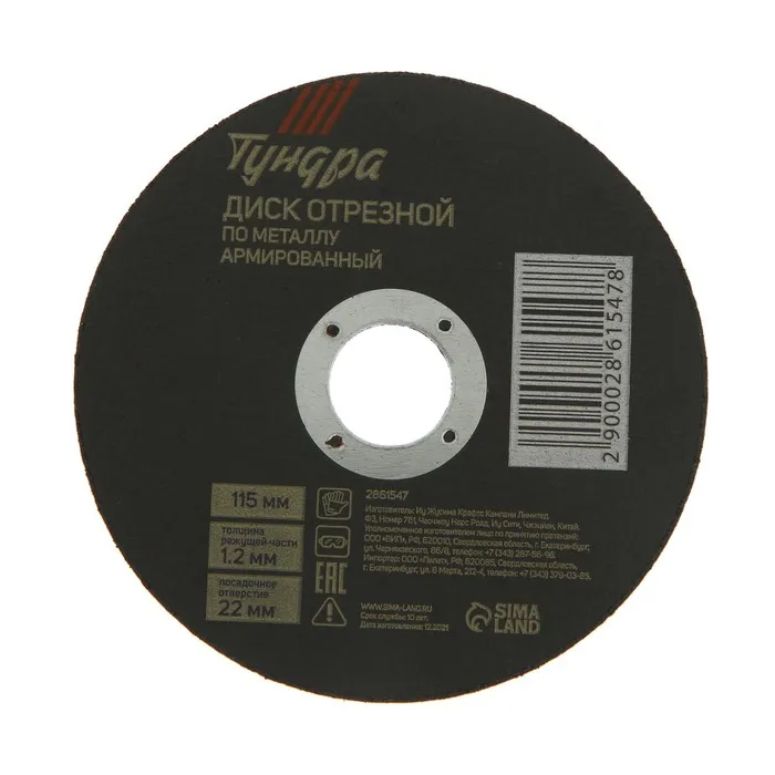 Круг отрезной по металлу ТУНДРА, армированный, 115×1.2×22 мм — Характеристики