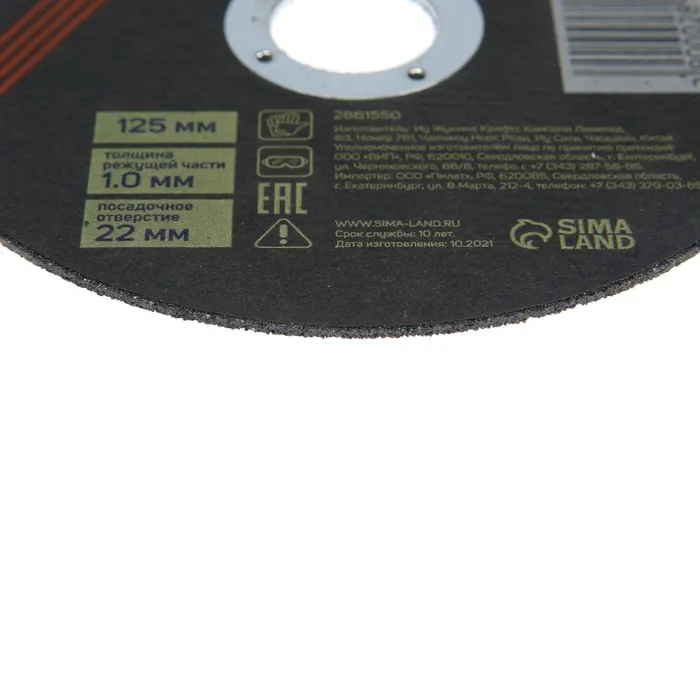 Круг отрезной по металлу ТУНДРА, армированный, 125×1.0×22 мм — Характеристики