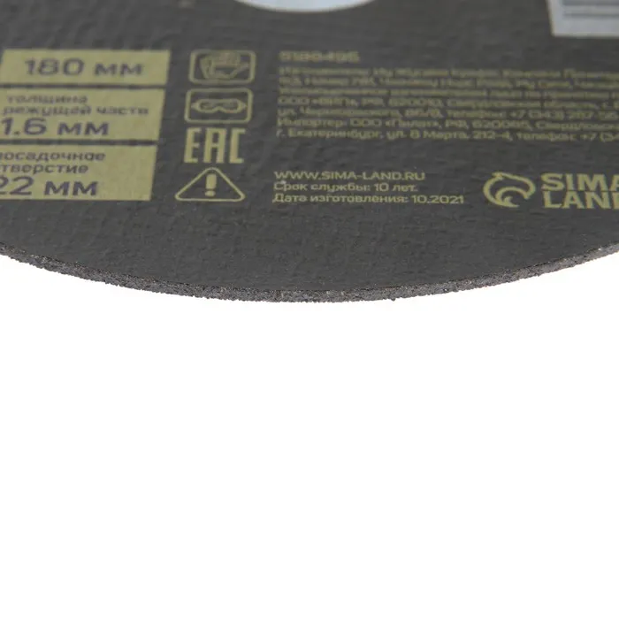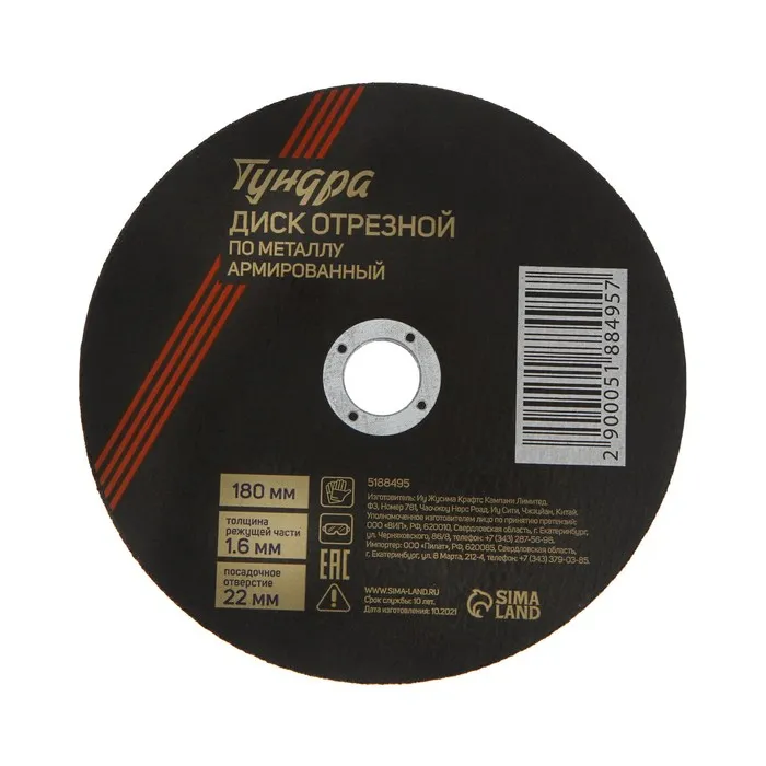Круг отрезной по металлу ТУНДРА, армированный, 180×1.6×22 мм — Характеристики