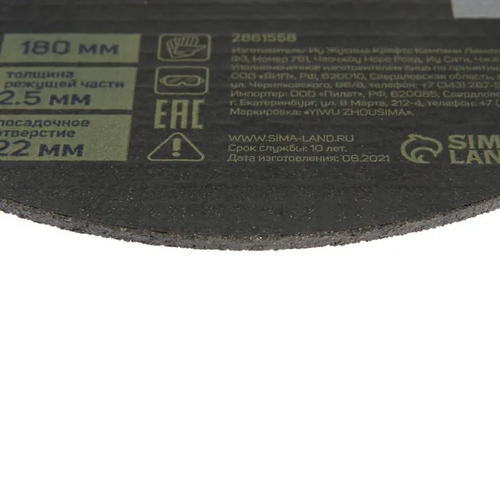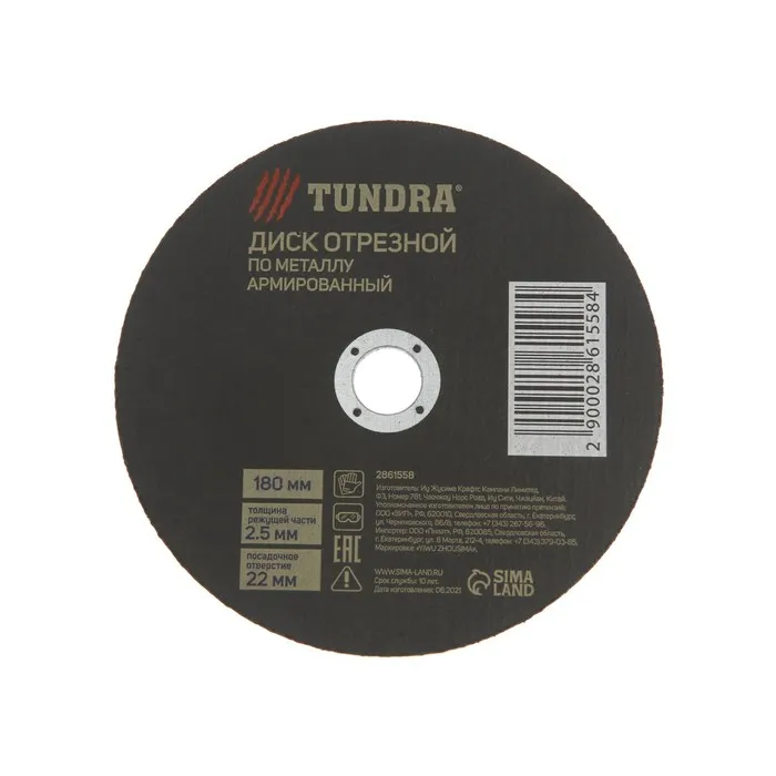 Круг отрезной по металлу ТУНДРА, армированный, 180×2.5×22 мм — Характеристики