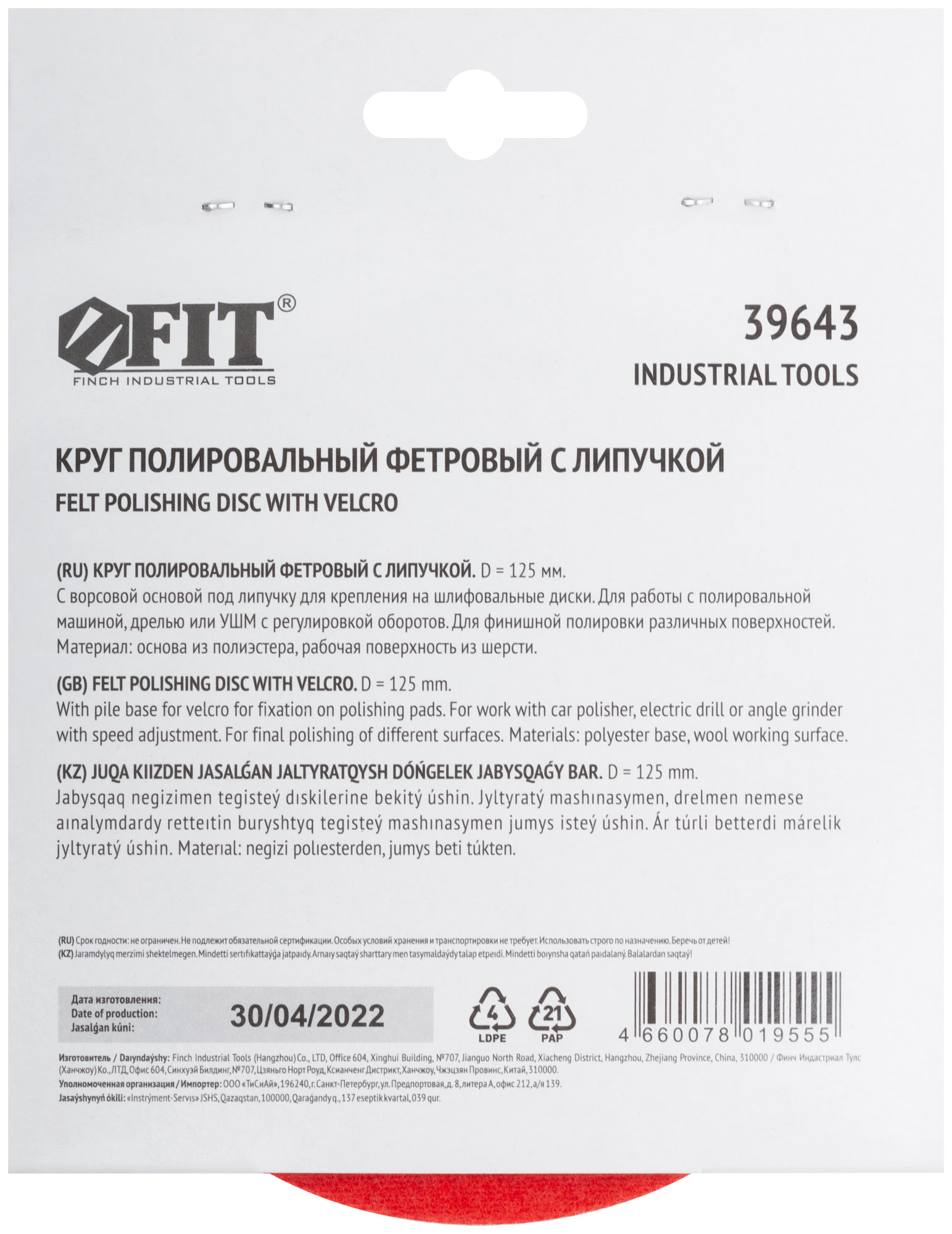 Этот полировальный круг от бренда FIT станет незаменимым инструментом для мастеров, занимающихся финишной обработкой поверхностей. Благодаря липучке, круг легко крепится к шлифовальной машине, что позволяет быстро приступить к работе.