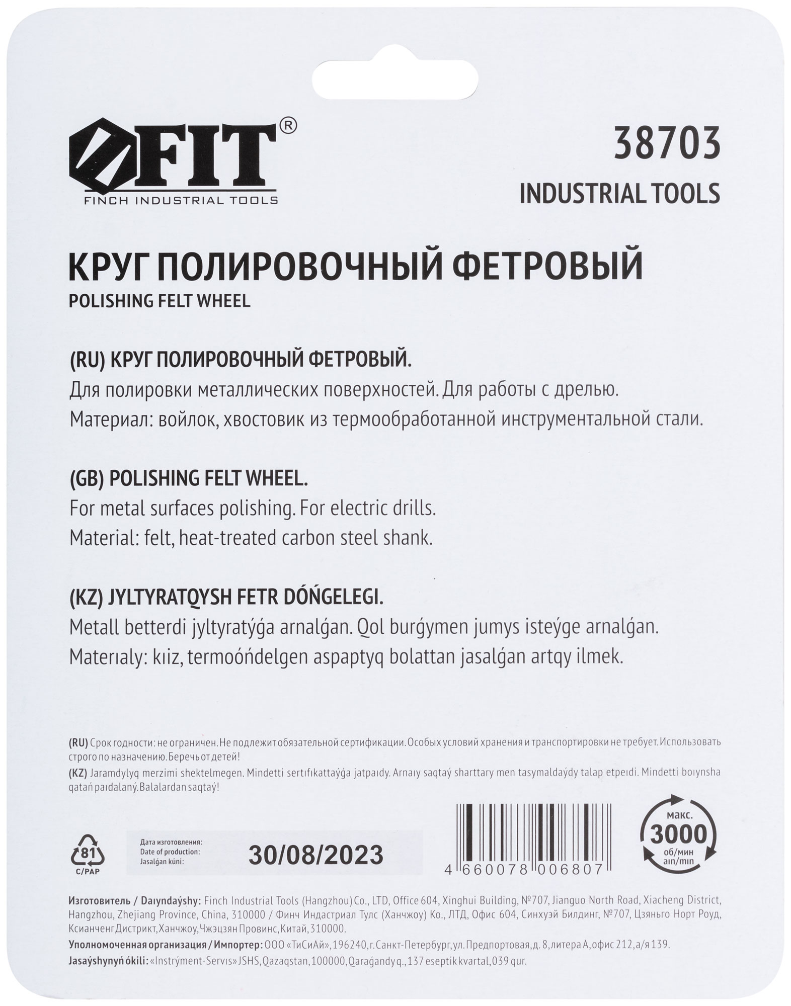 Выберите фетровый круг FIT 38703, чтобы обеспечить высокое качество полировки и продлить срок службы вашего инструмента.