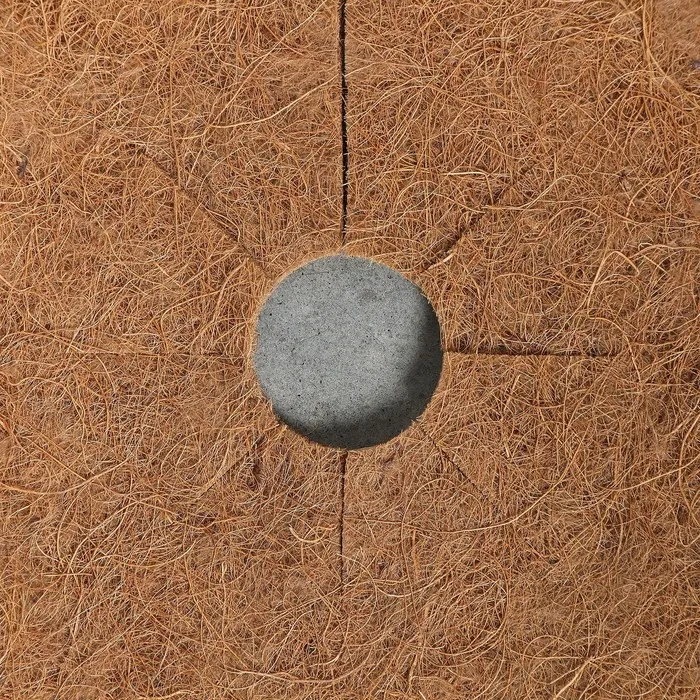 Приствольный круг изготавливают из кокосового полотна, он свободно пропускает воду и не мешает поливу.