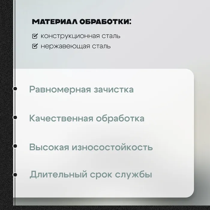- Толщина 6 мм: Идеальный баланс между прочностью и гибкостью. Ширина позволяет эффективно справляться с различными задачами, от удаления ржавчины до полировки.