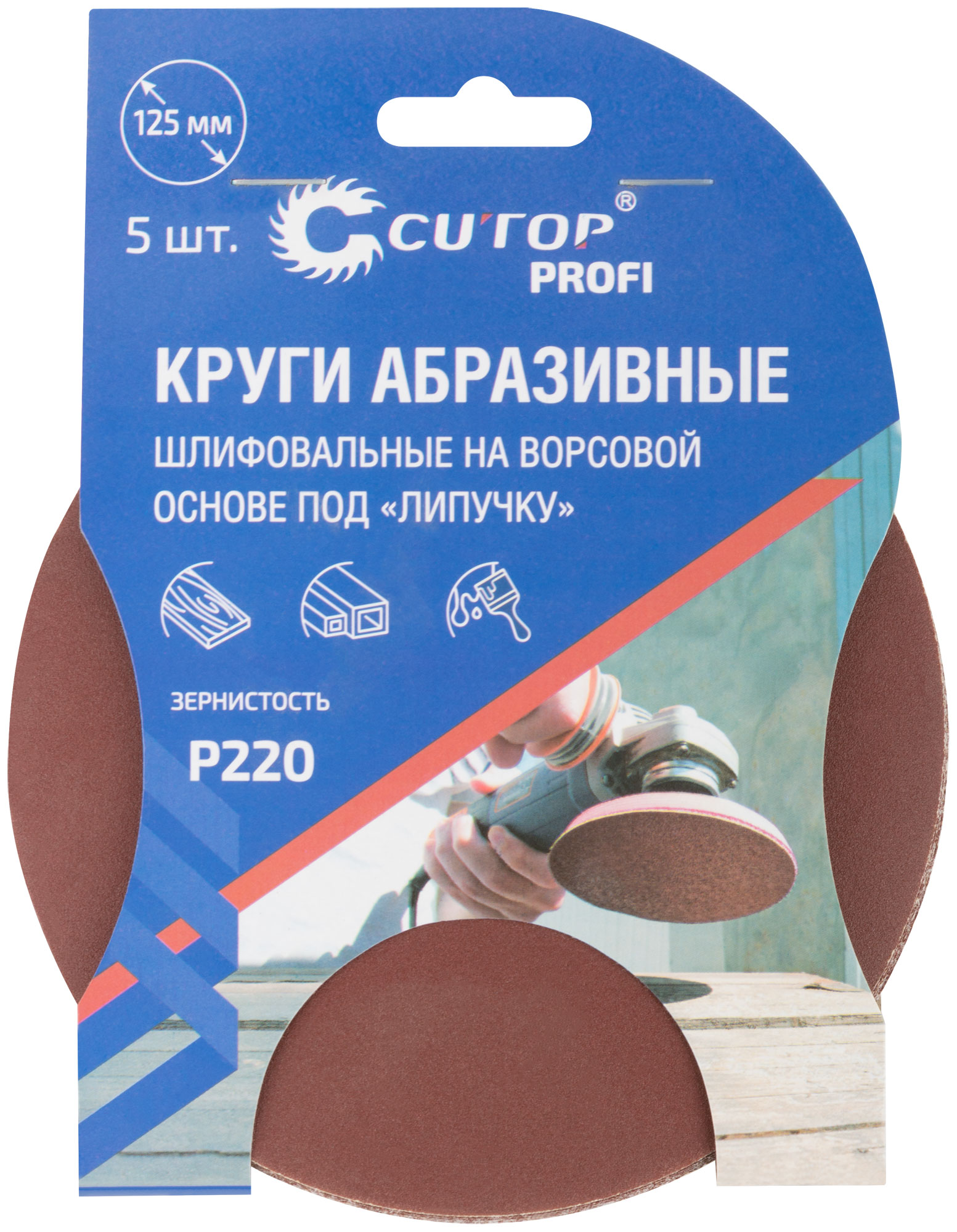 Круги Cutop Profi изготовлены из прочных материалов, их диаметр составляет 125 мм, а зернистость — Р220, что делает их идеальными для тонкой обработки и завершающих этапов шлифовки.