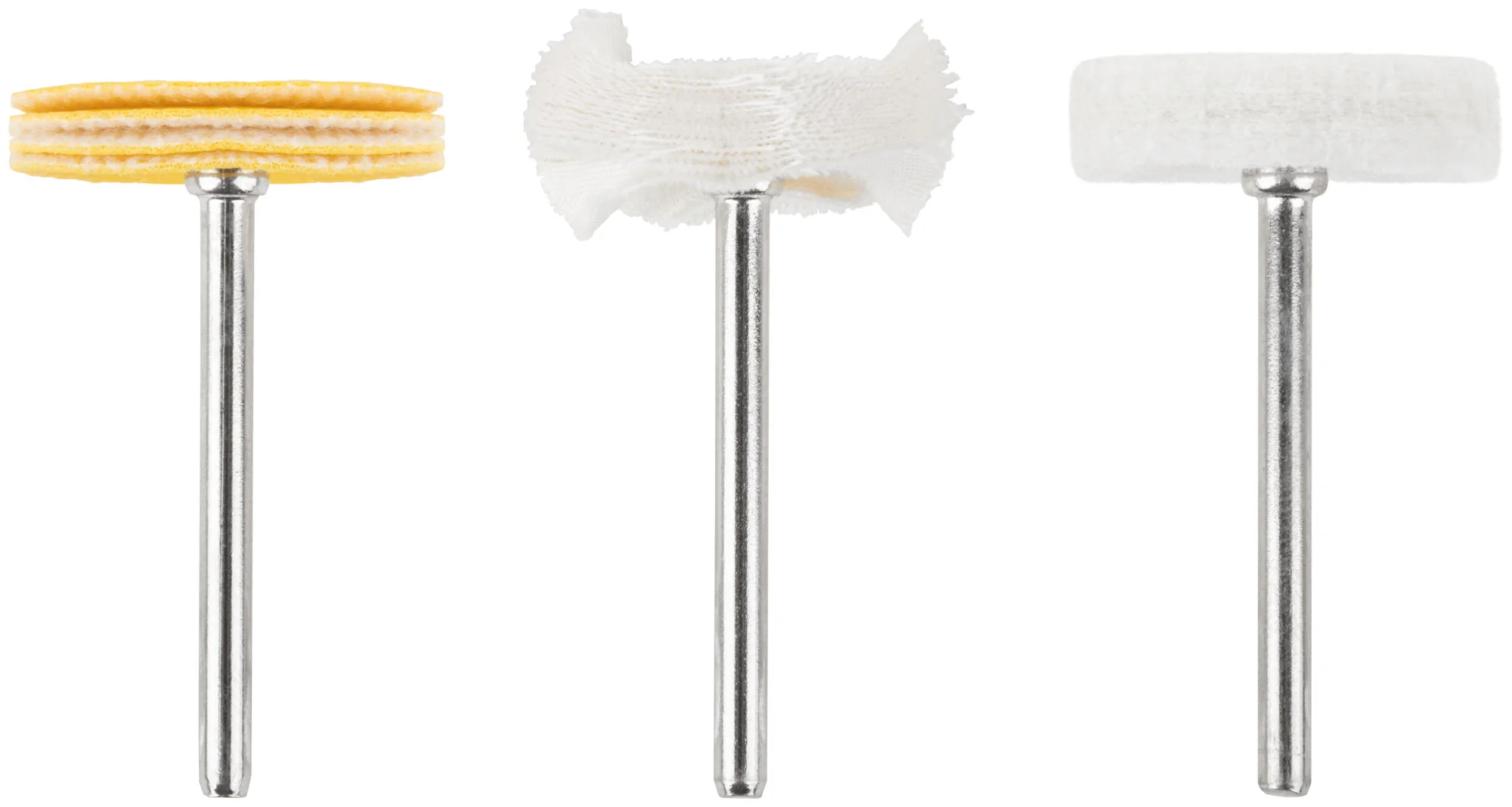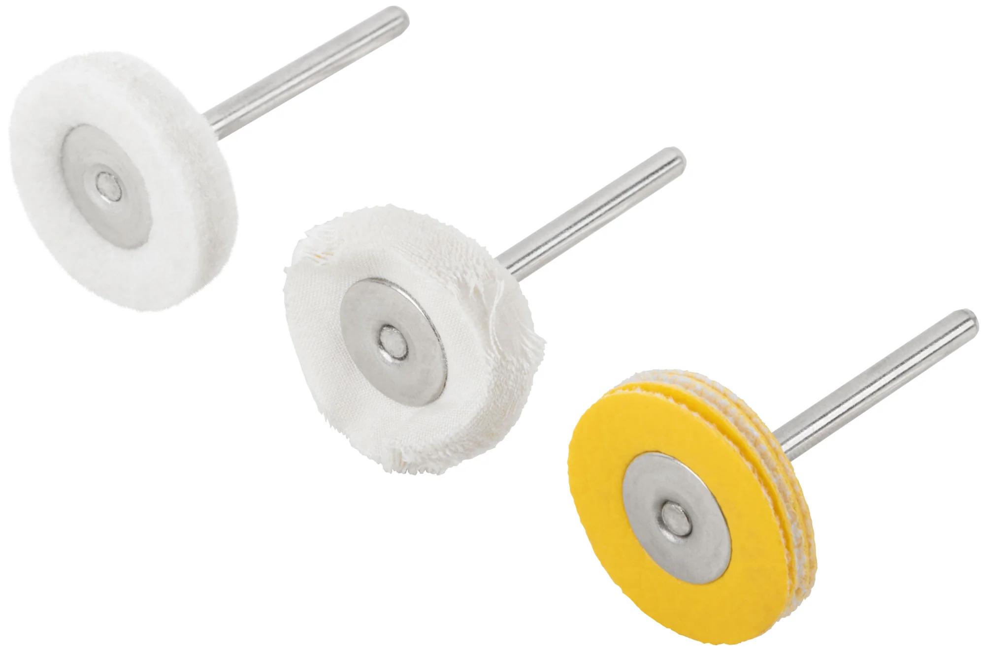 Круги изготовлены из хлопка, шерсти и поролона, с прочным хвостовиком диаметром 3,1 мм, что обеспечивает надежное крепление и долговечность при эксплуатации. Эти материалы отлично справляются с задачей полировки, позволяя добиться гладкой и блестящей поверхности без повреждений.