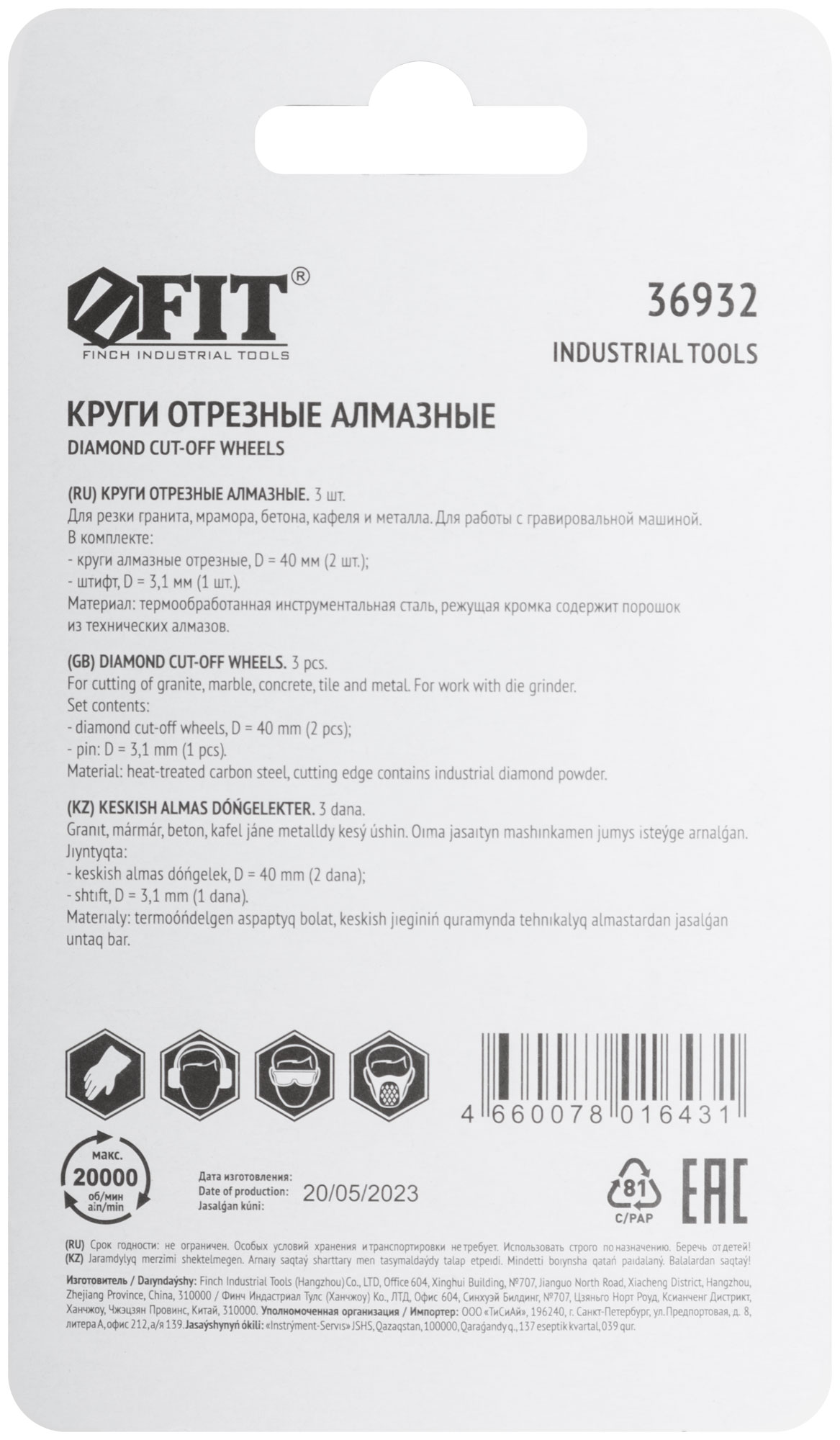 Выберите алмазные круги FIT 40 мм, чтобы обеспечить высокое качество резки в вашем проекте. Артикул: 36932.