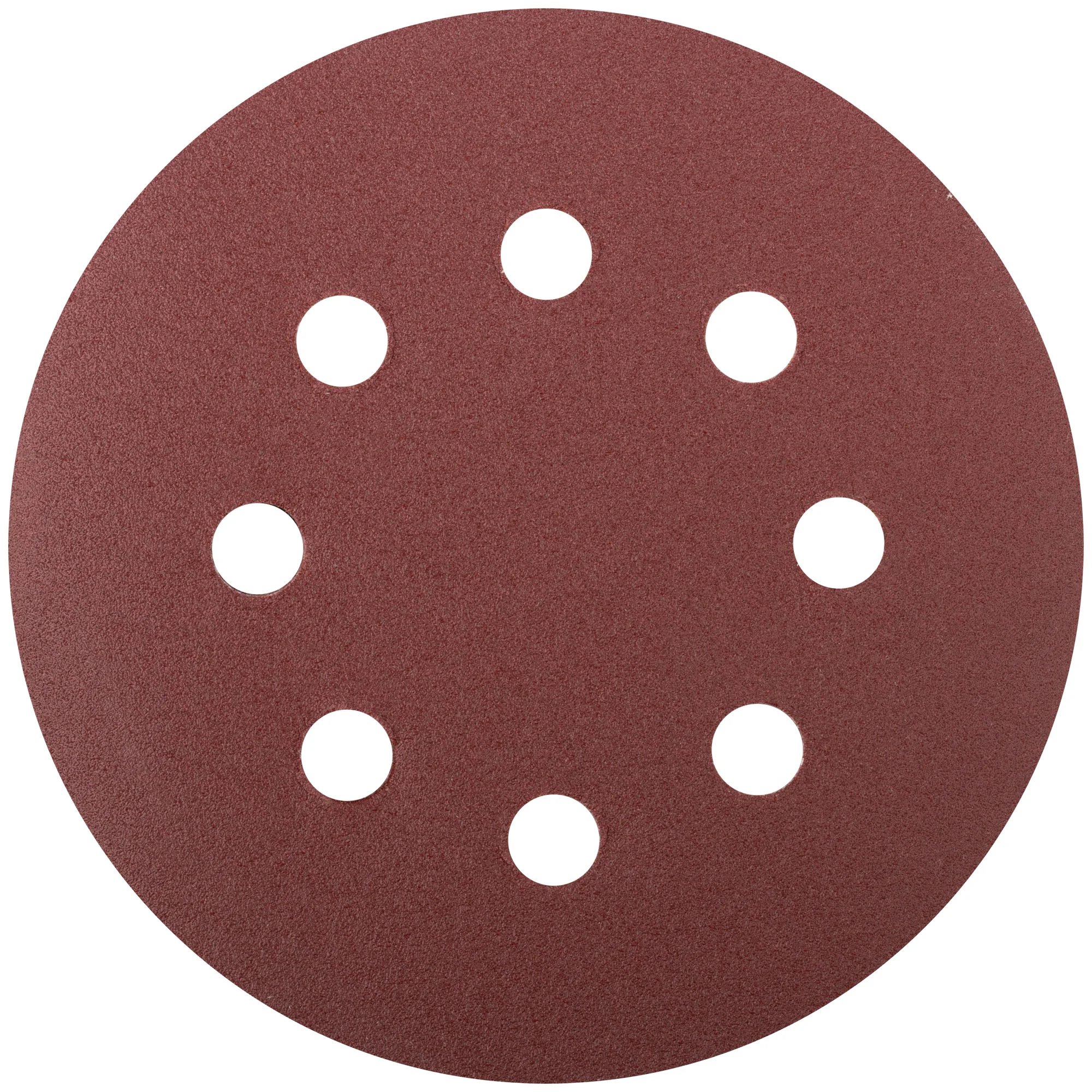 Круги оснащены 8 отверстиями для эффективного отвода пыли и выполнены на тканевой основе с липучкой, что облегчает их замену. Абразивный слой из оксида алюминия обеспечивает отличную производительность и долговечность.