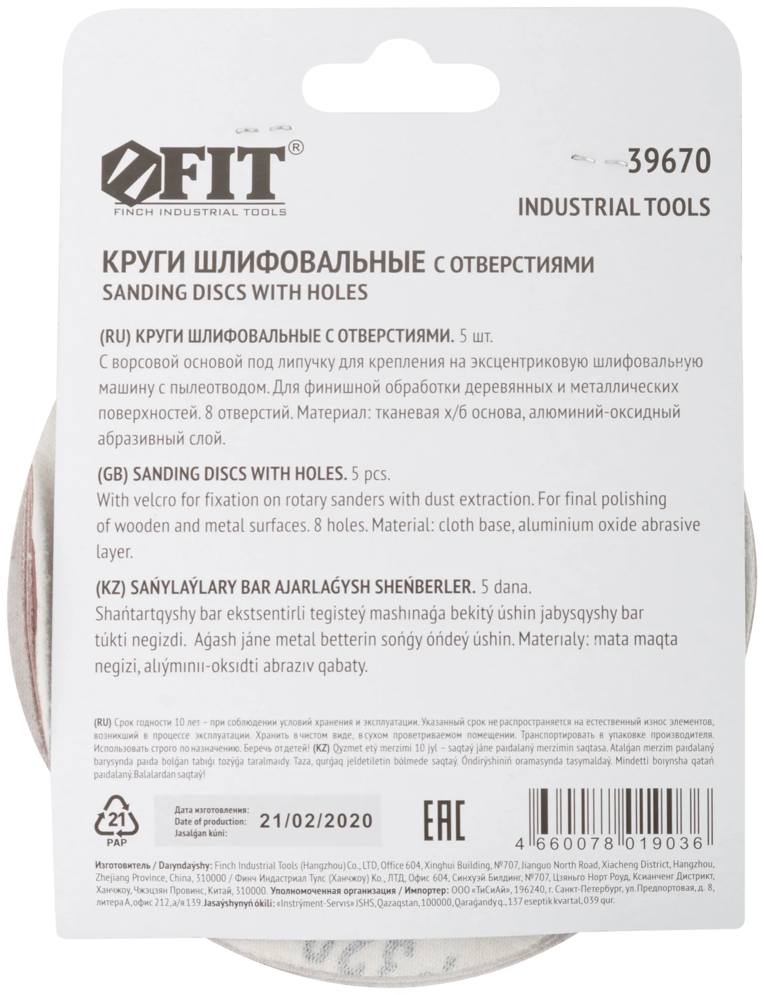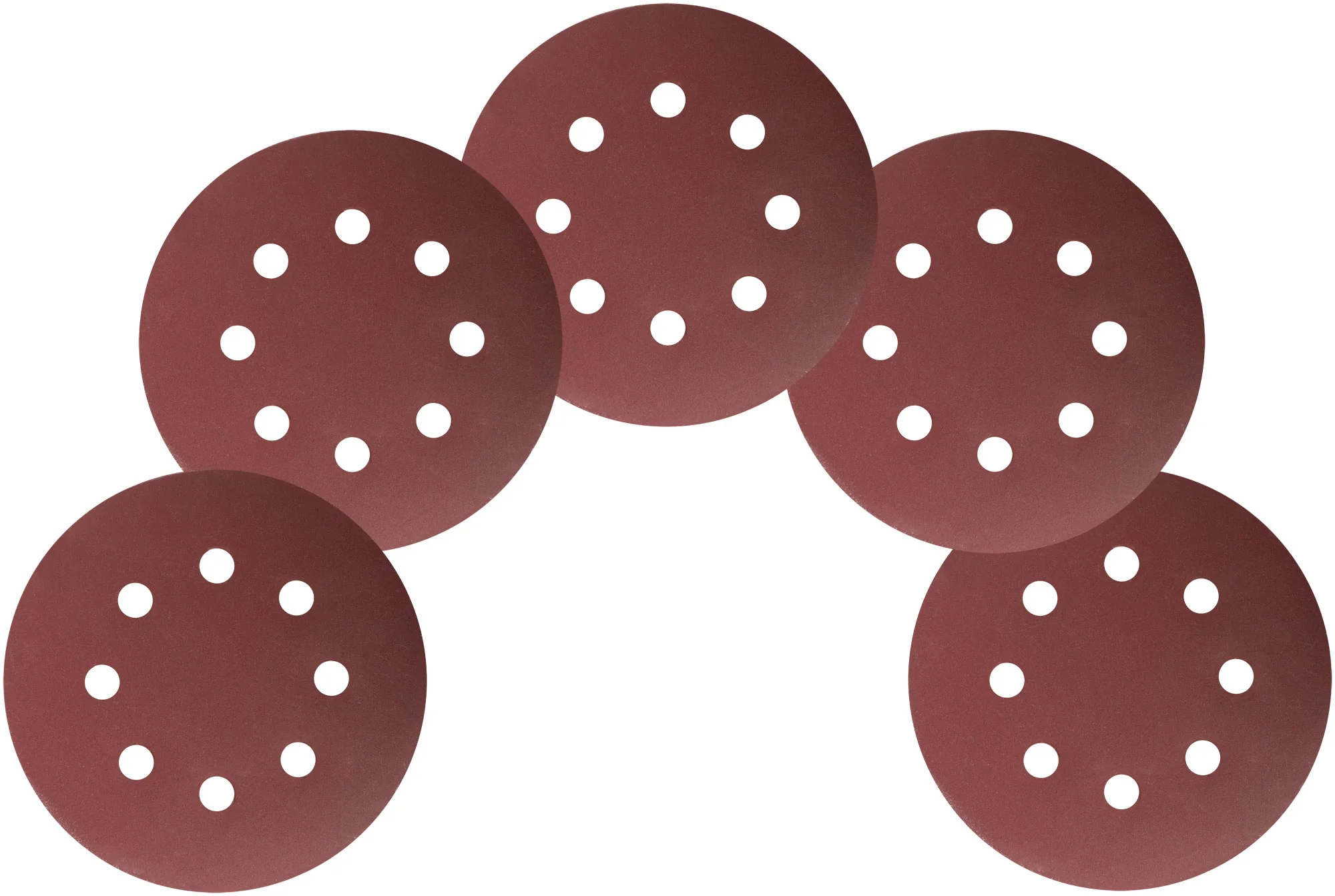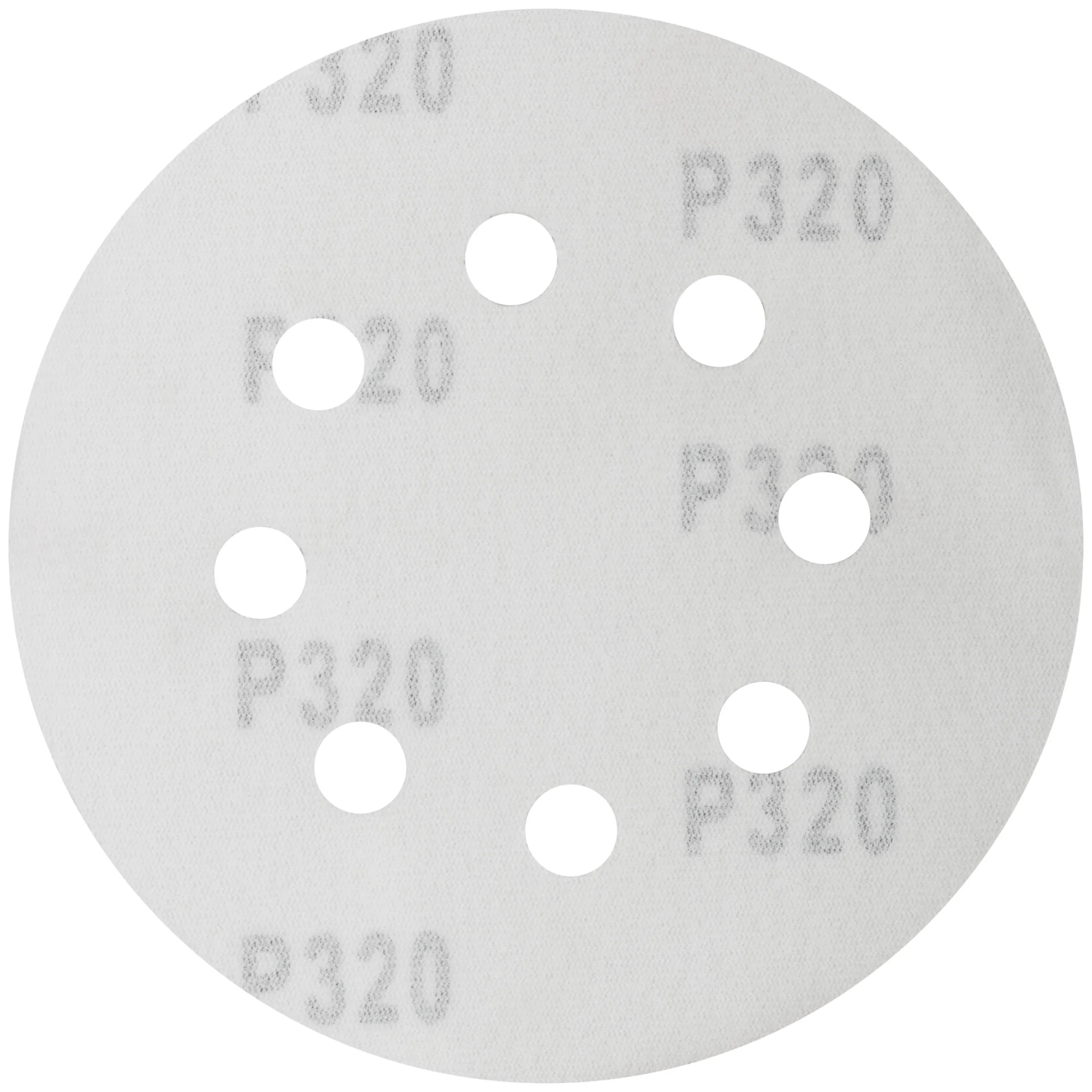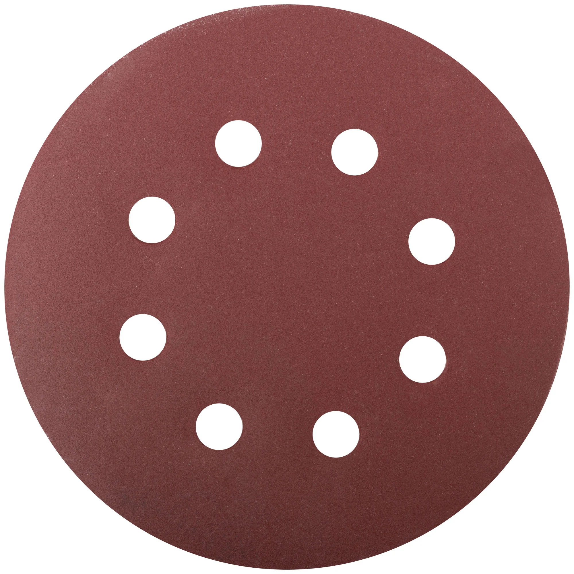 Круги изготовлены из оксида алюминия, что обеспечивает их долговечность и эффективность в работе. Основание из ткани с липучкой позволяет быстро и надежно закрепить круг на шлифмашине, а наличие 8 отверстий способствует эффективному отводу пыли.