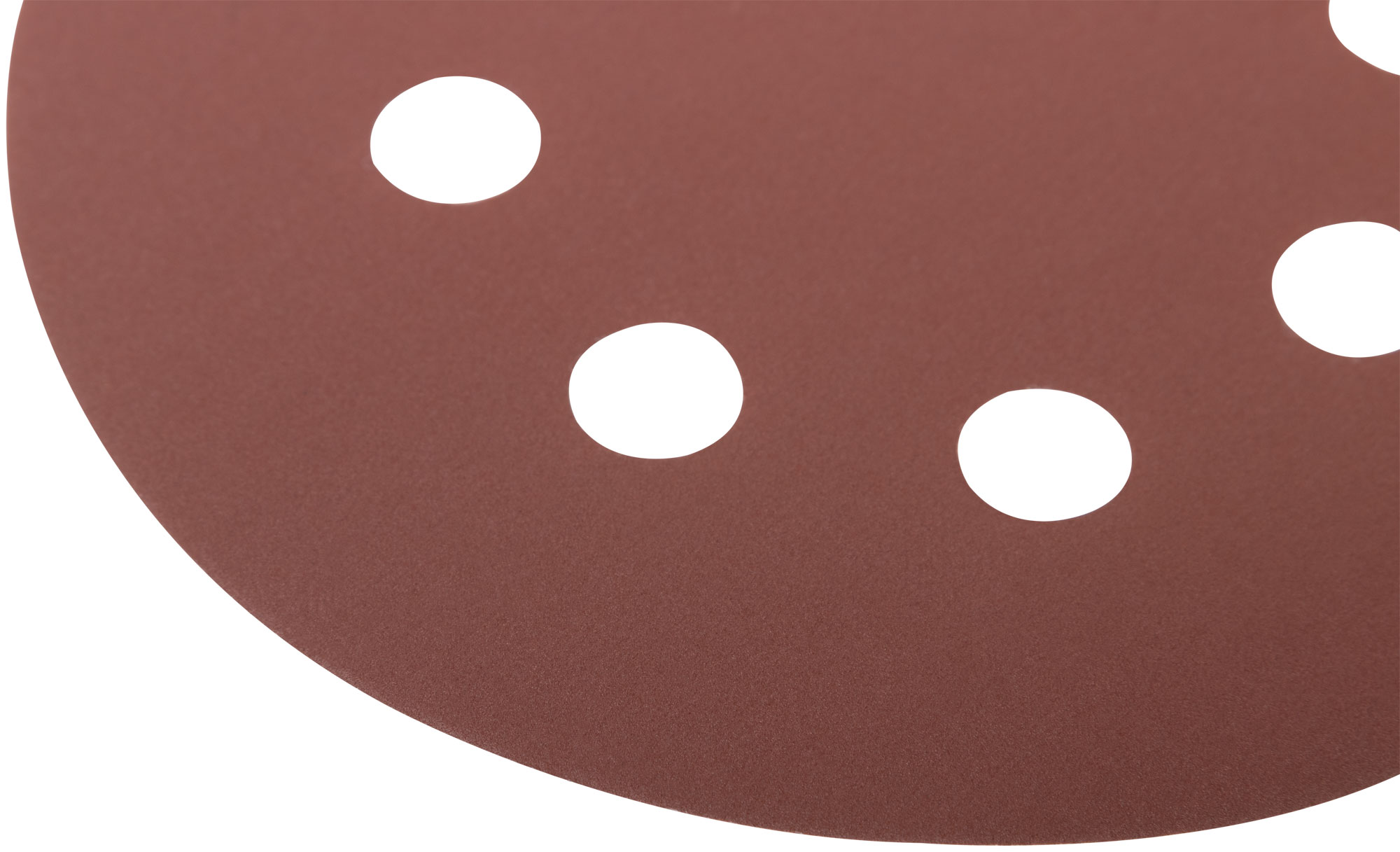 Круги диаметром 125 мм изготовлены с использованием абразивного слоя из оксида алюминия, что обеспечивает долговечность и высокую эффективность в работе. Наличие 8 отверстий позволяет эффективно удалять пыль, поддерживая чистоту рабочей зоны и улучшая видимость обрабатываемой поверхности.